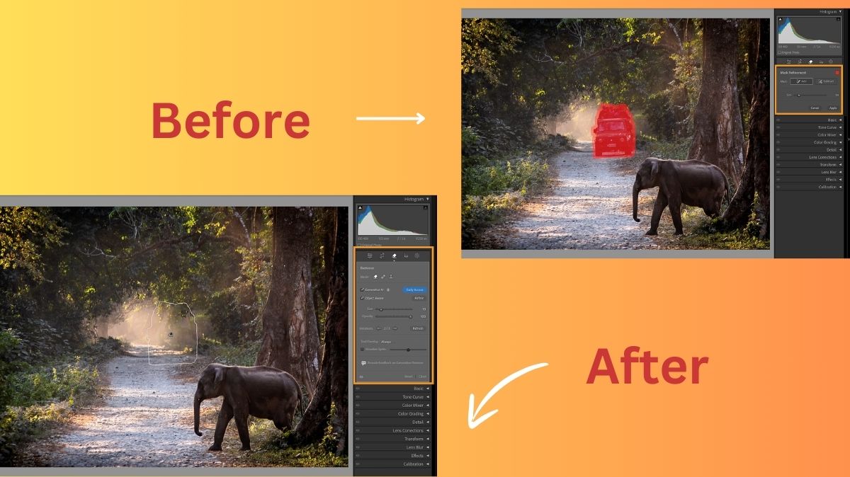- The “Generative Remove” option in Adobe Lightroom Classic makes it simple to eliminate distractions from within the programme.